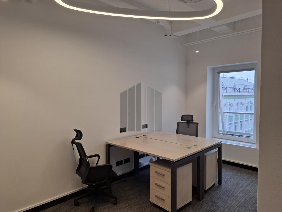 Деловая часть комплекса оснащена приточно-вытяжной вентиляцией, централизованным кондиционированием, противопожарным оборудованием с функцией дымоудаления и прочими необходимыми инженерными системами. На территории здания подключен скоростной интернет, установлены три грузопассажирских лифта швейцарской компании Shindler.
